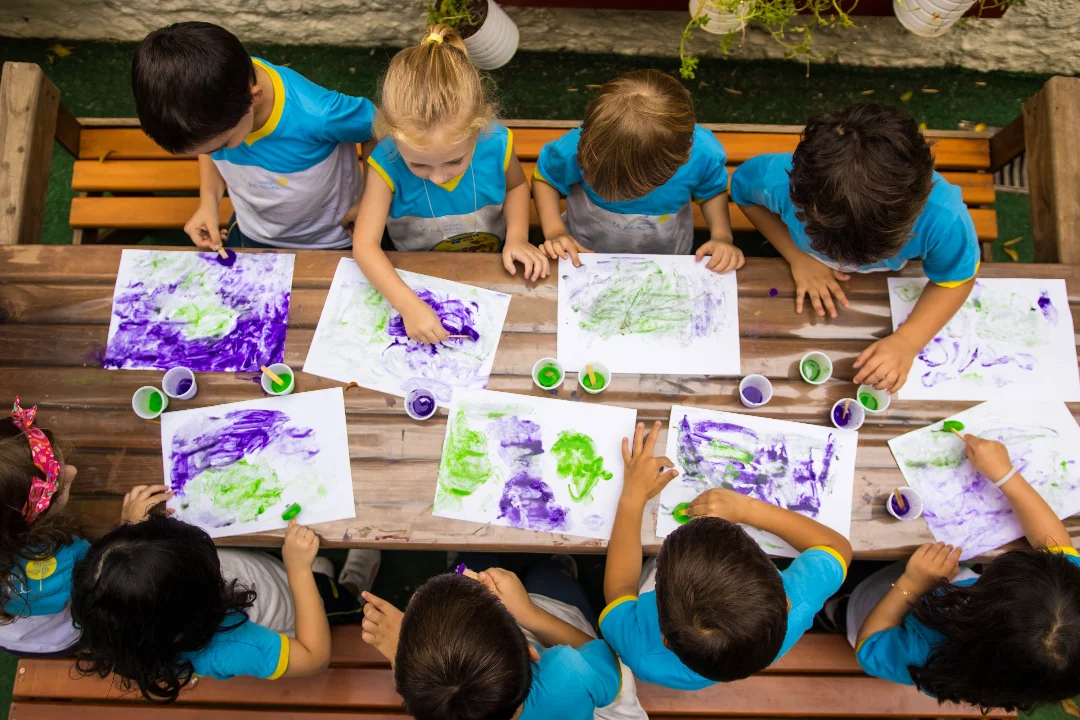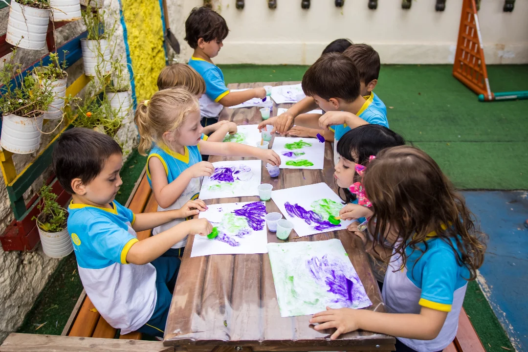 Os alunos do Jardim I Integral vivenciaram uma experiência cheia de encantamento ao explorar cores e sensações em uma divertida pintura com gelo colorido.