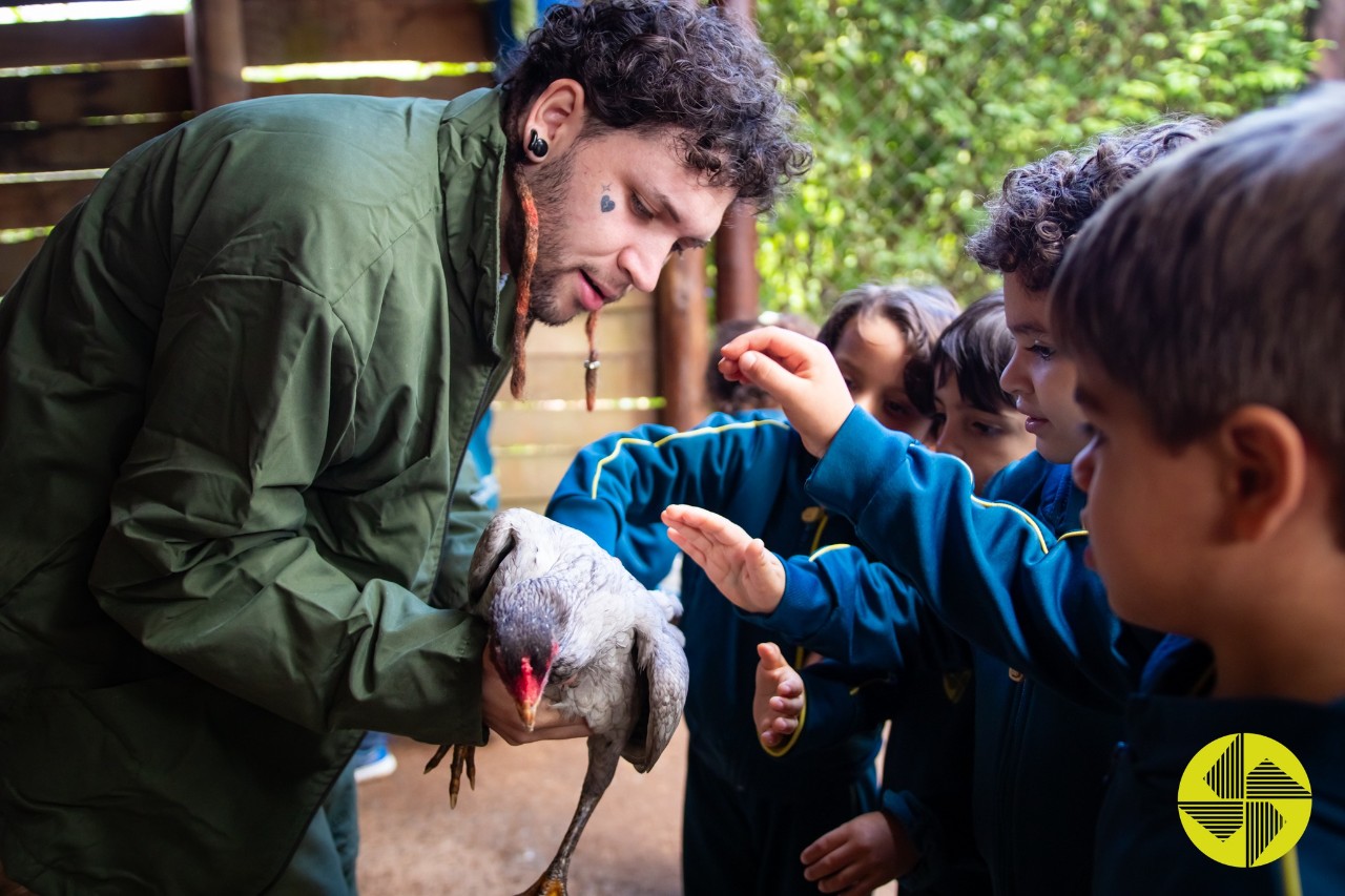 Os alunos do Jardim I mergulharam no universo da fazenda e se encantaram com cada encontro: teve orelhinha de coelho, mugido de vaca, penas coloridas e até bicho que corre mais que a gente!