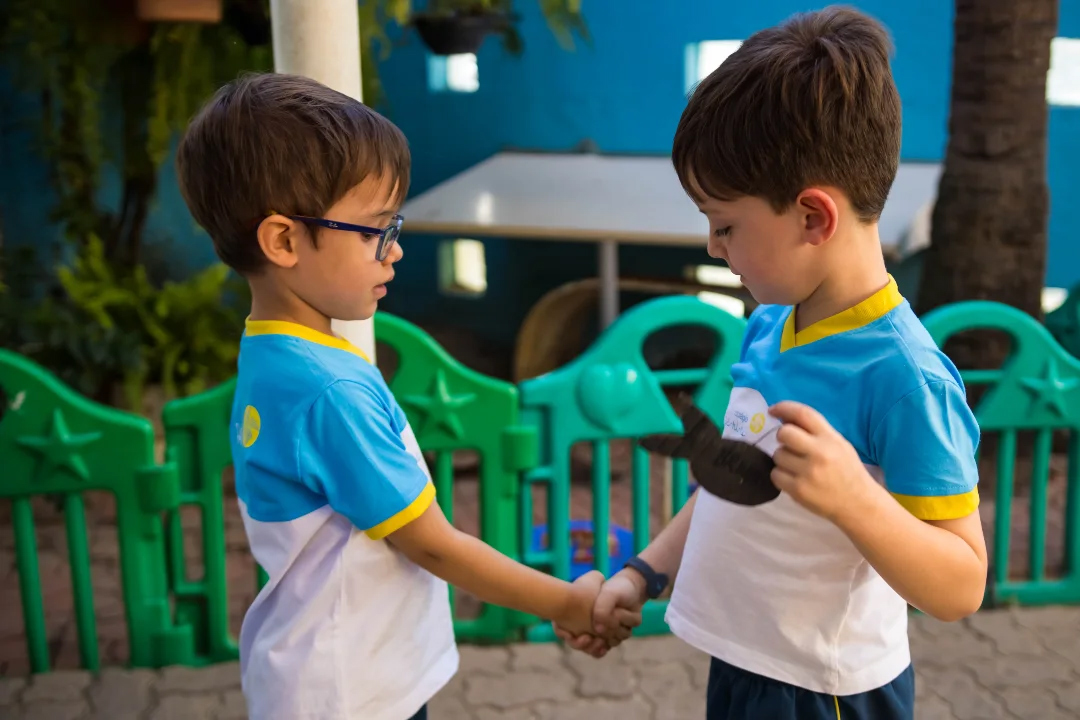 Na aula de Inteligência Emocional, os alunos do Jardim I D participaram de uma brincadeira cheia de carinho e diversão! Cada peixinho pescado na caixa de areia trazia uma ação especial: um abraço, um beijo, um aperto de mão ou um elogio.