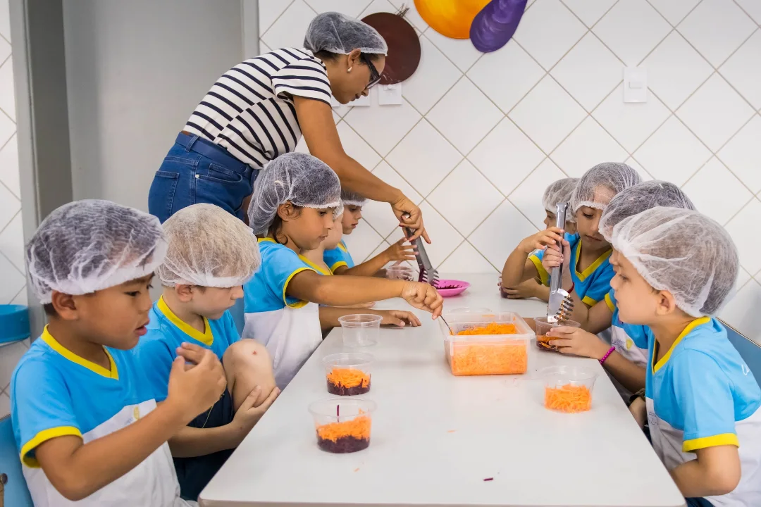 Culinária na escola trabalhando uma alimentação saudável repleta de cores e sabores.