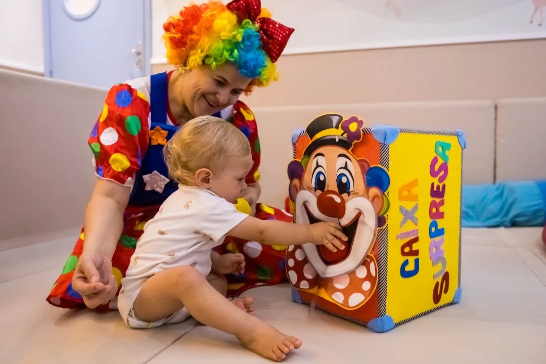 Em comemoração ao Dia do Circo, nossos alunos do berçário participaram de uma atividade cheia de diversão: acertar a bolinha na boca do palhaço!