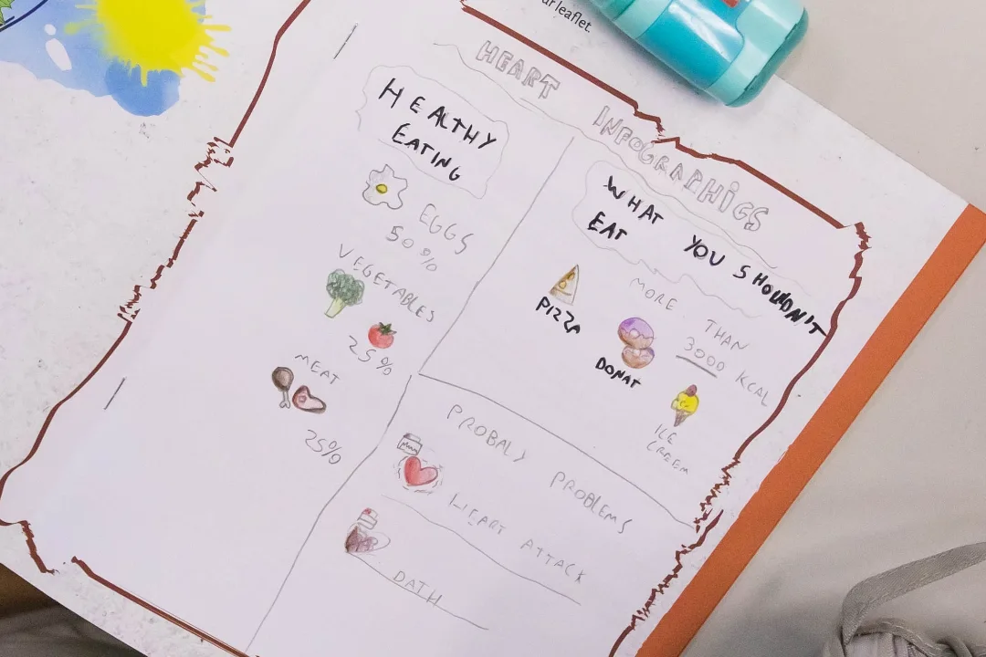 Os alunos do 5º ano B mergulharam em um projeto cheio de significado ao produzir panfletos informativos sobre hábitos saudáveis.