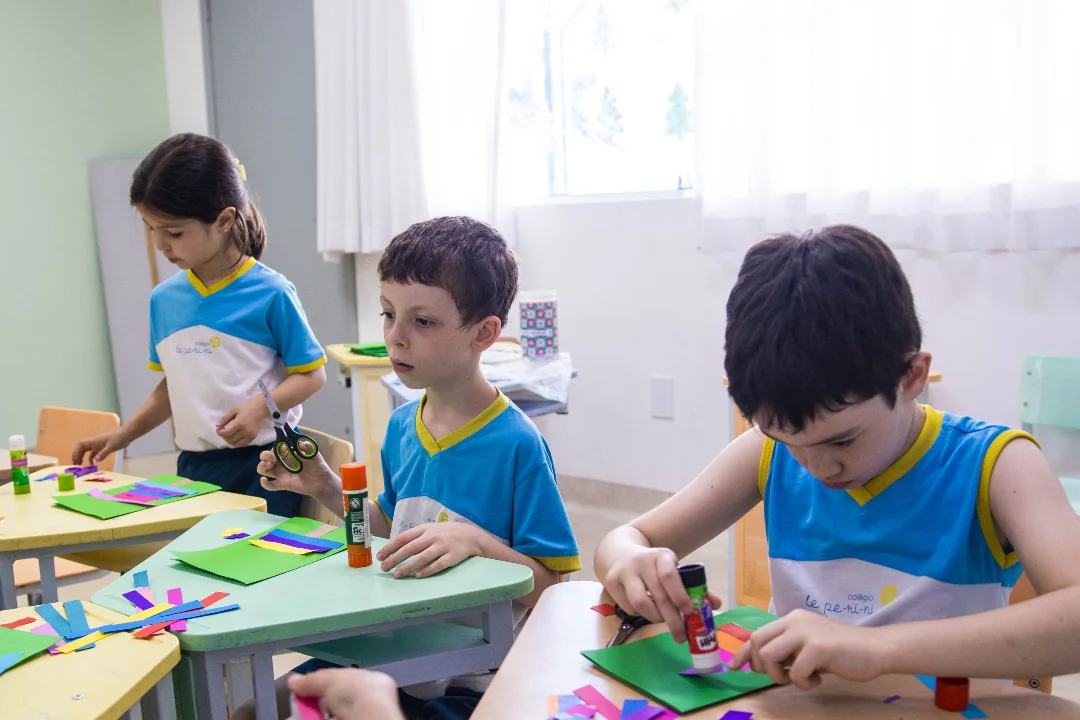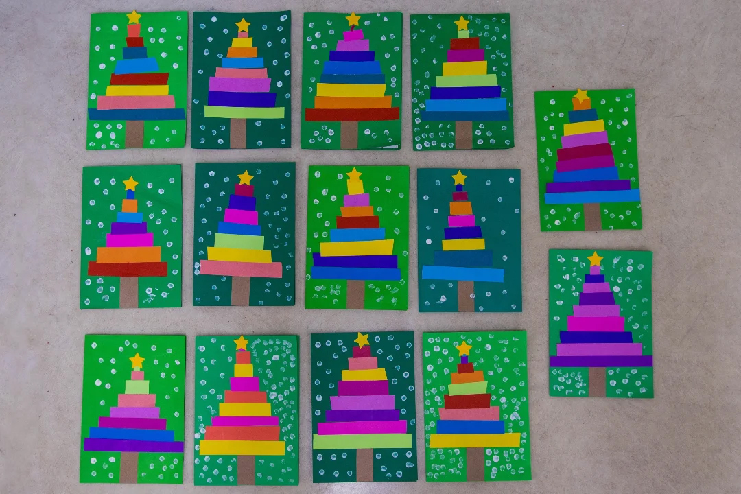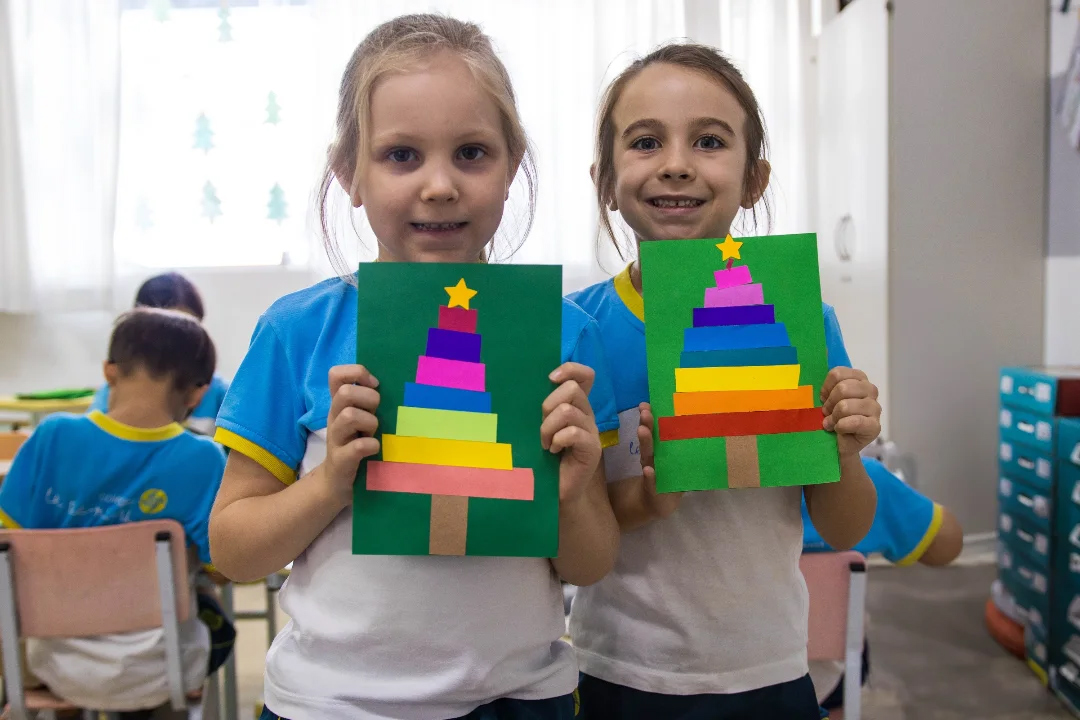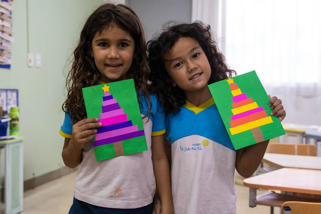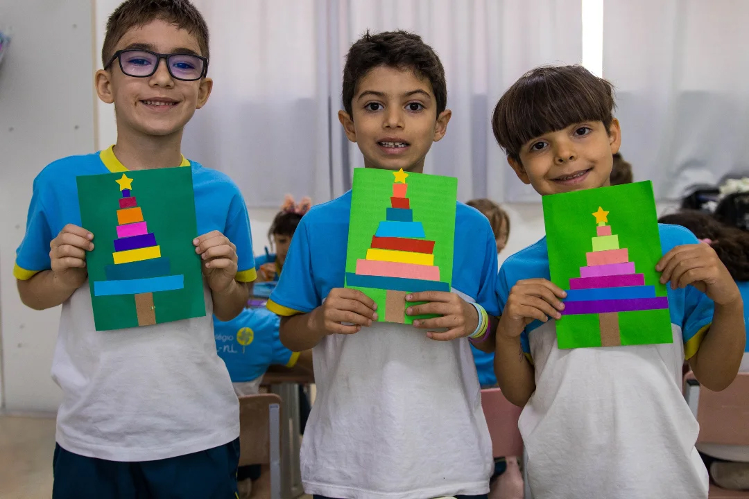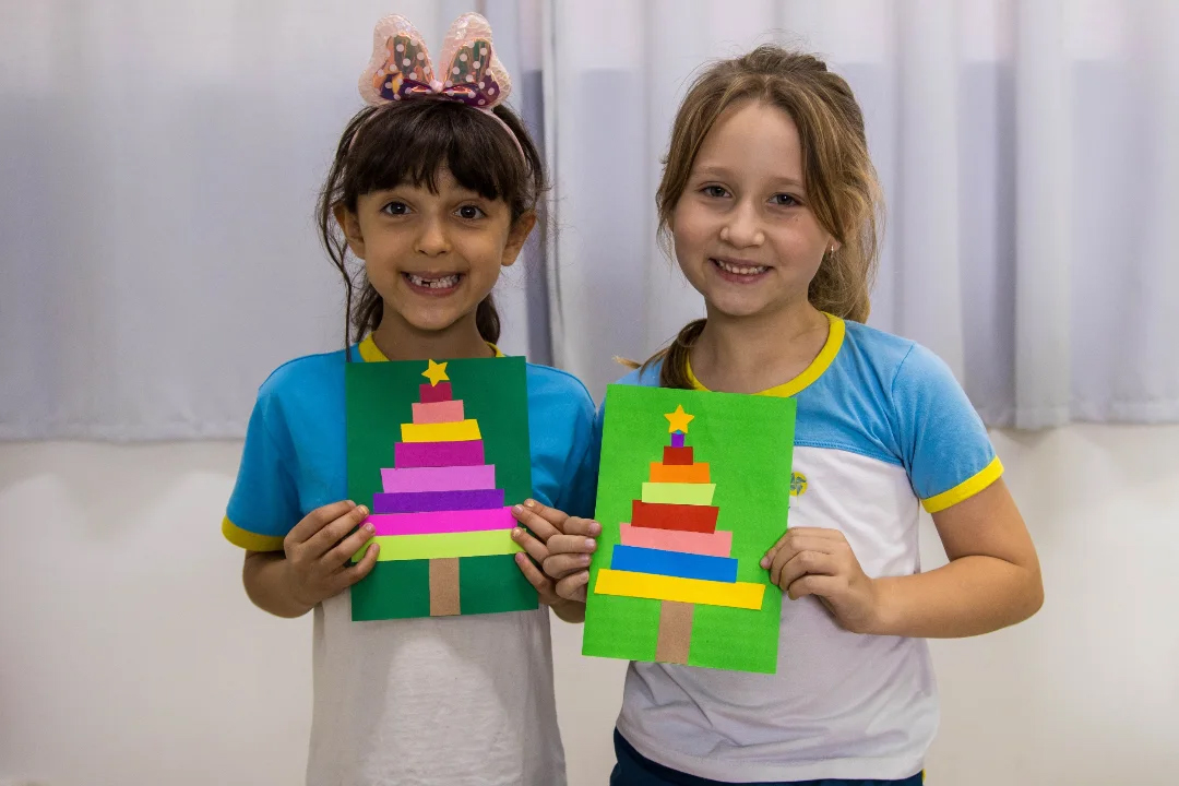As crianças produziram, com capricho e criatividade, seus próprios cartões de Natal, vivenciando uma experiência que integra afeto, expressão artística e sentido de pertencimento