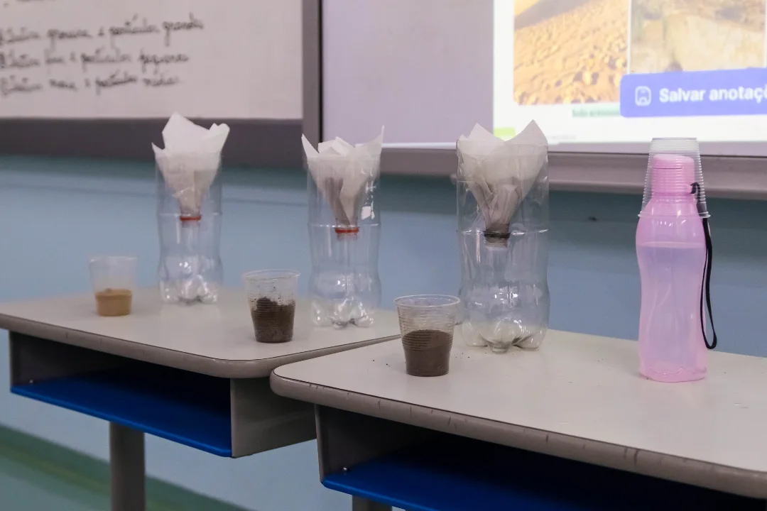 Eles observaram três tipos de solo: arenoso, argiloso e rico em matéria orgânica, analisando suas características ao adicionar água e perceberam as alterações na cor, absorção e textura de cada um.