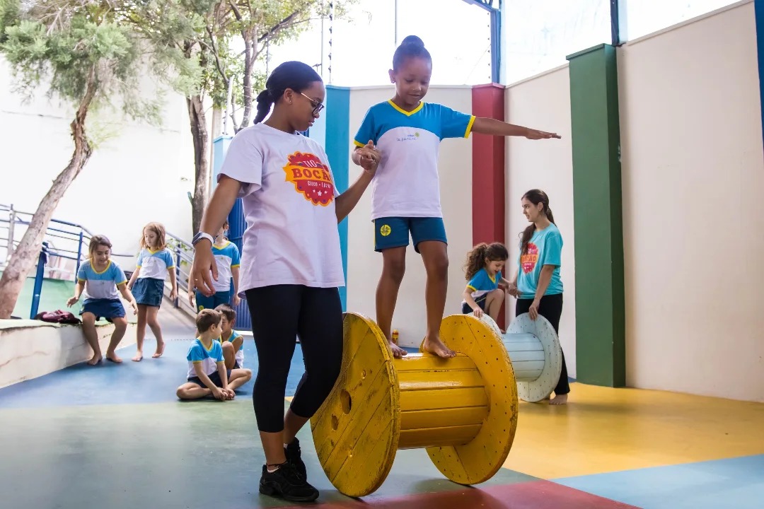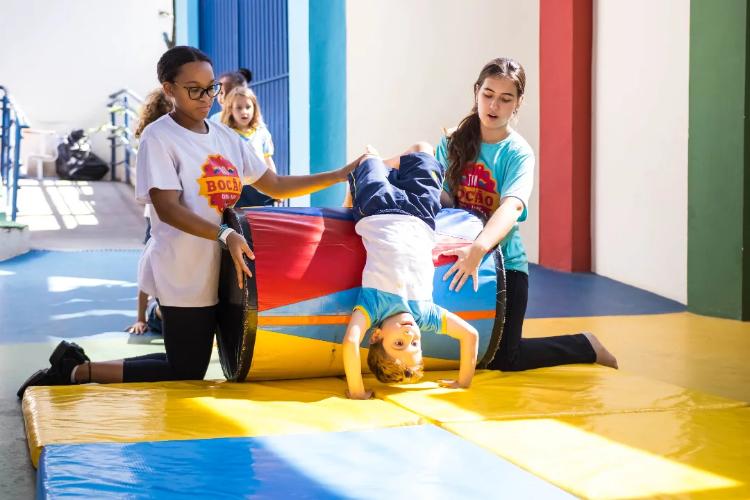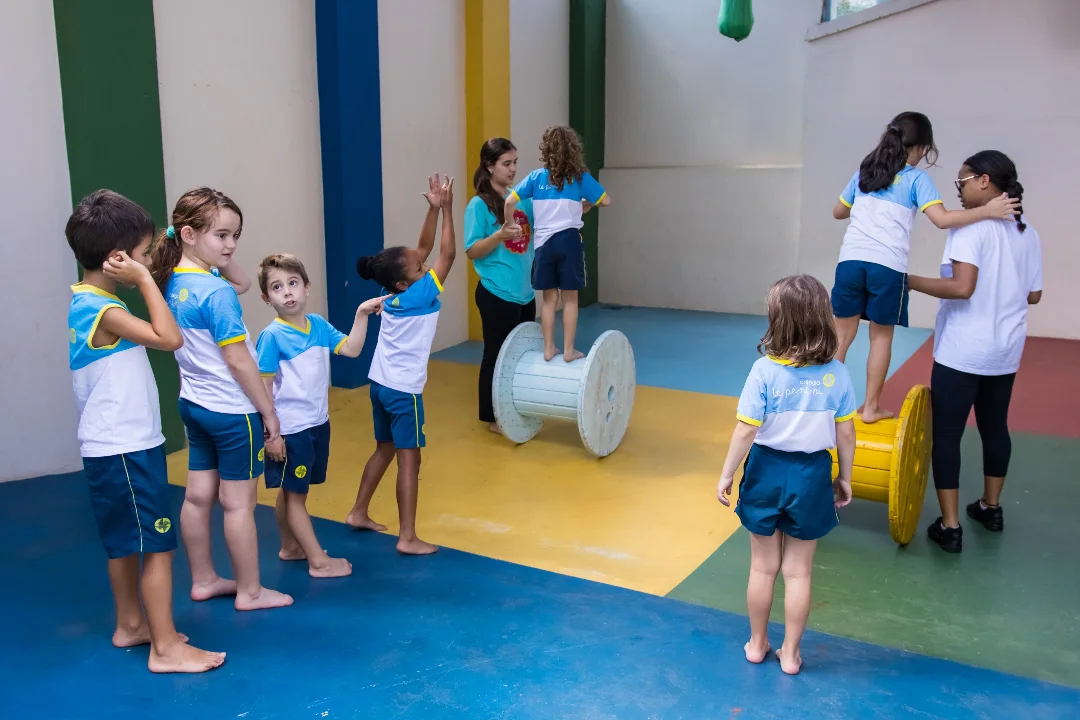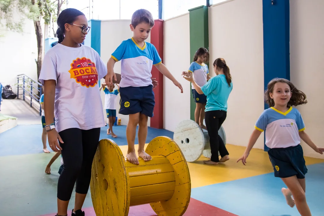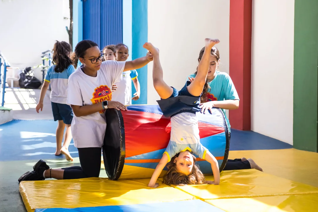Teve equilíbrio no carretel, treino de cambalhota de costas e muitas descobertas em movimento. Entre uma tentativa e outra, eles desenvolvem coordenação, equilíbrio e confiança.