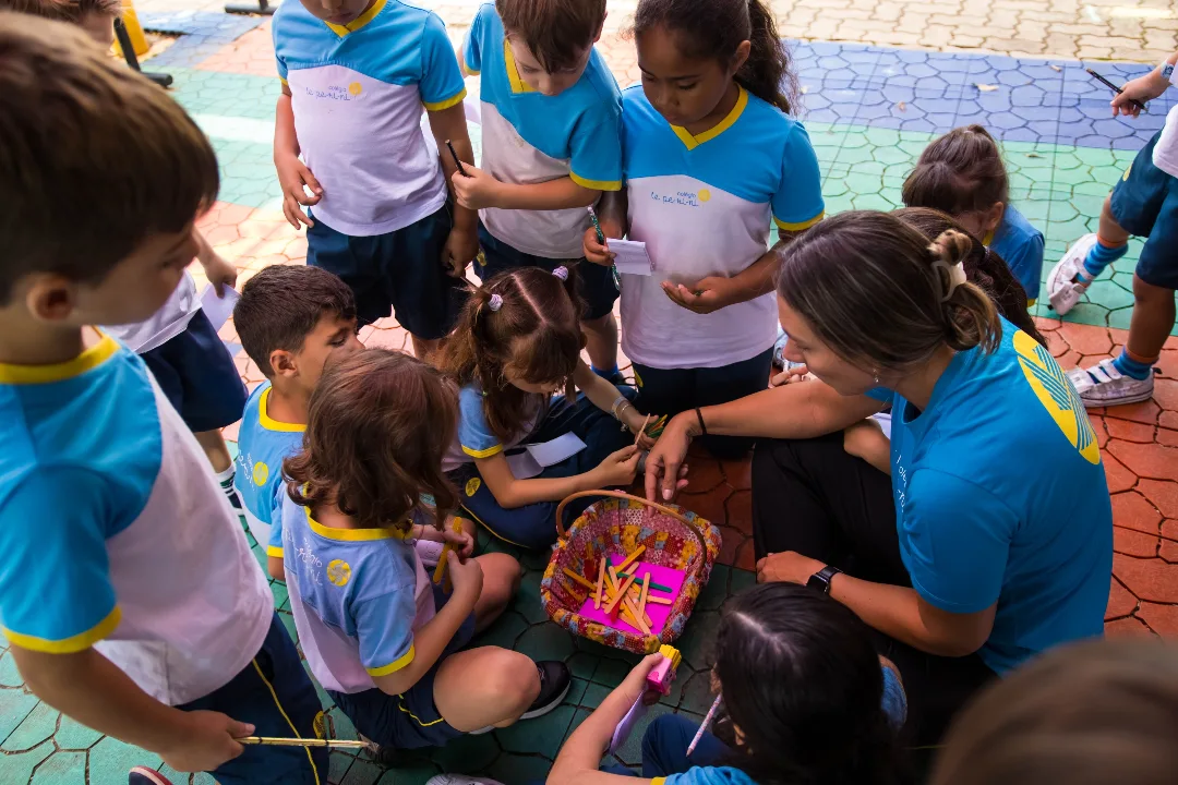 Os alunos do 1º ano A participaram de uma atividade dinâmica com a Cesta das Estimativas, explorando os numerais até 40.
