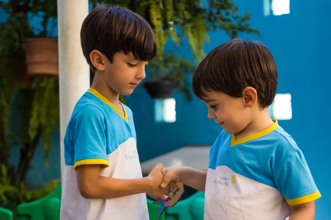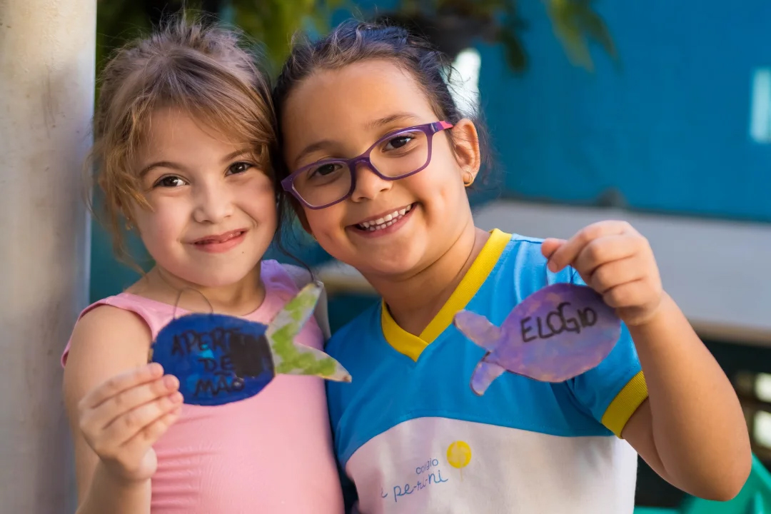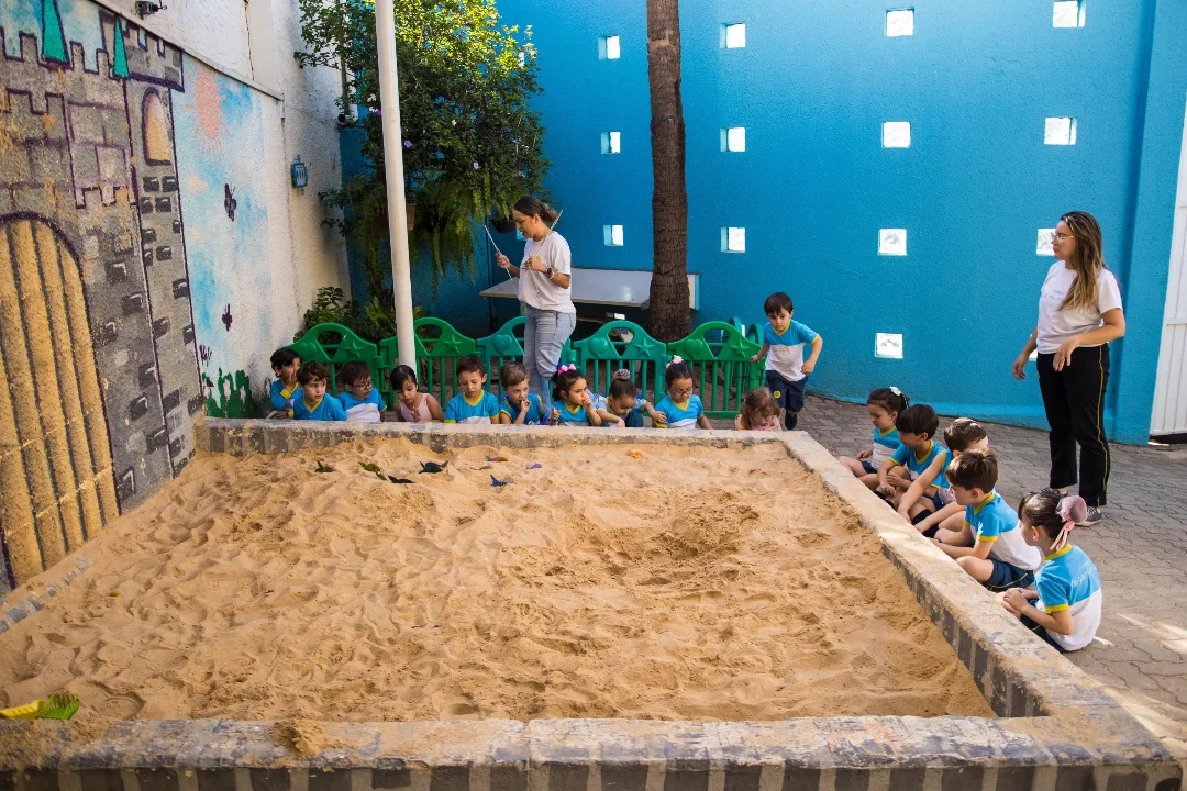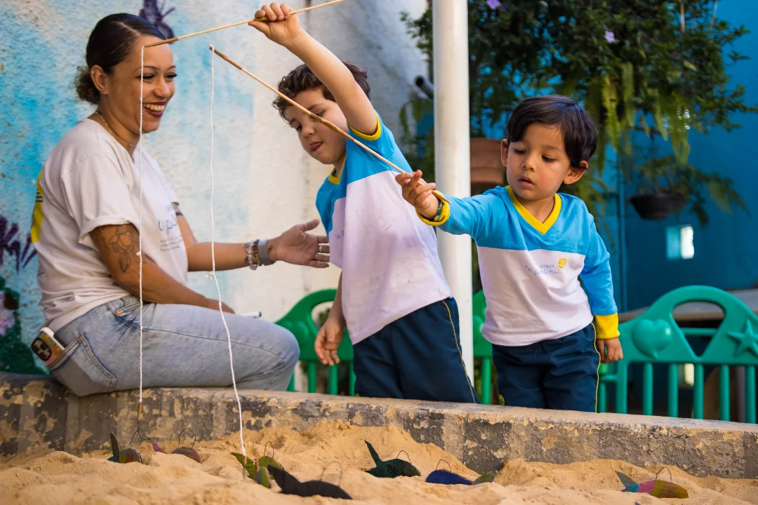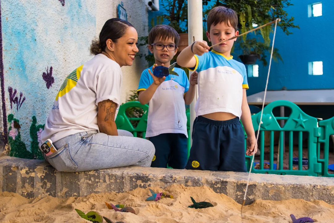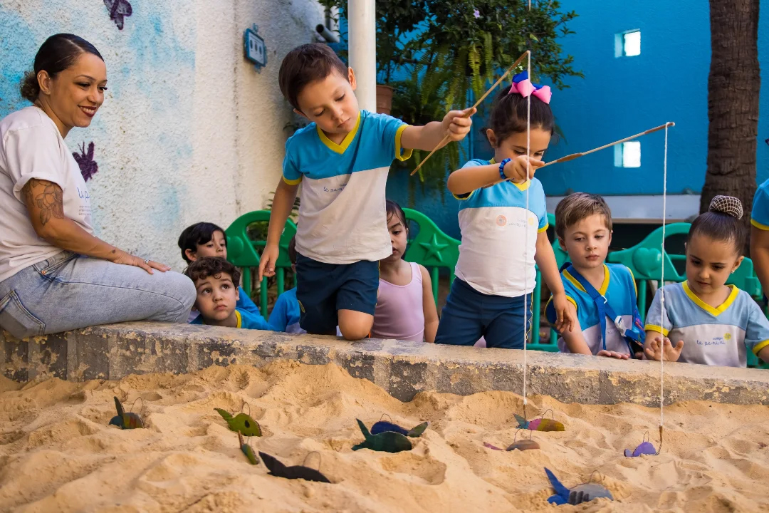 Na aula de Inteligência Emocional, os alunos do Jardim I D participaram de uma brincadeira cheia de carinho e diversão! Cada peixinho pescado na caixa de areia trazia uma ação especial: um abraço, um beijo, um aperto de mão ou um elogio.