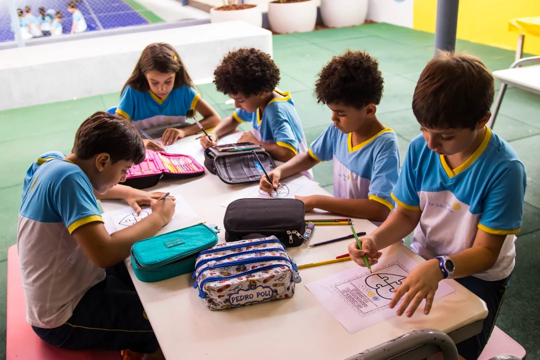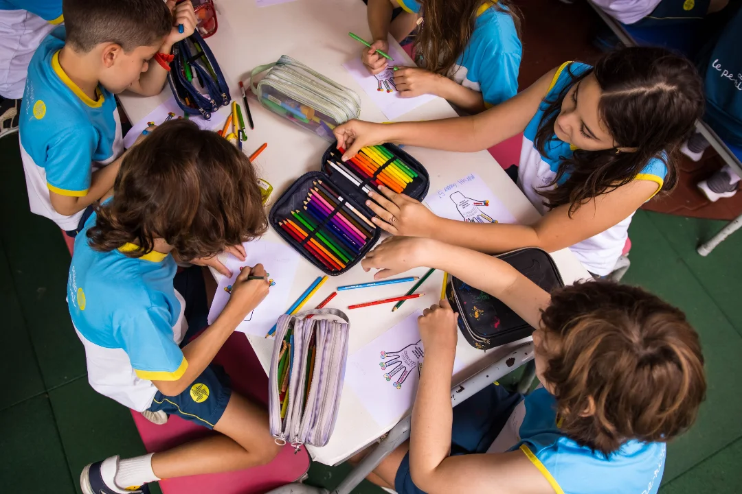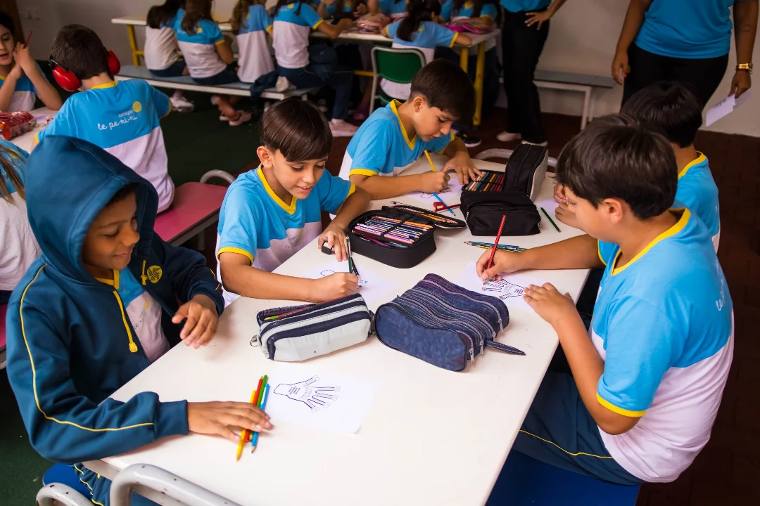 Como forma de expressão, os alunos registraram suas descobertas por meio da pintura, traduzindo em cores, formas e sentimentos tudo o que vivenciaram. Um exercício significativo que fortalece não só a aprendizagem, mas também a construção de vínculos e o respeito ao outro.